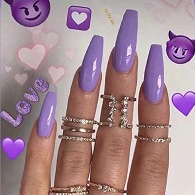for "Coffin Purple Nails / Grape Purple Coffin Nails False Nail Full Cover Ballerina Fake Nails Dark Purple Flat Shape Artificial Fuax Ongles 24pcs False Nails Aliexpress - They elongate the fingers and provide a bigger canvas for nail art."